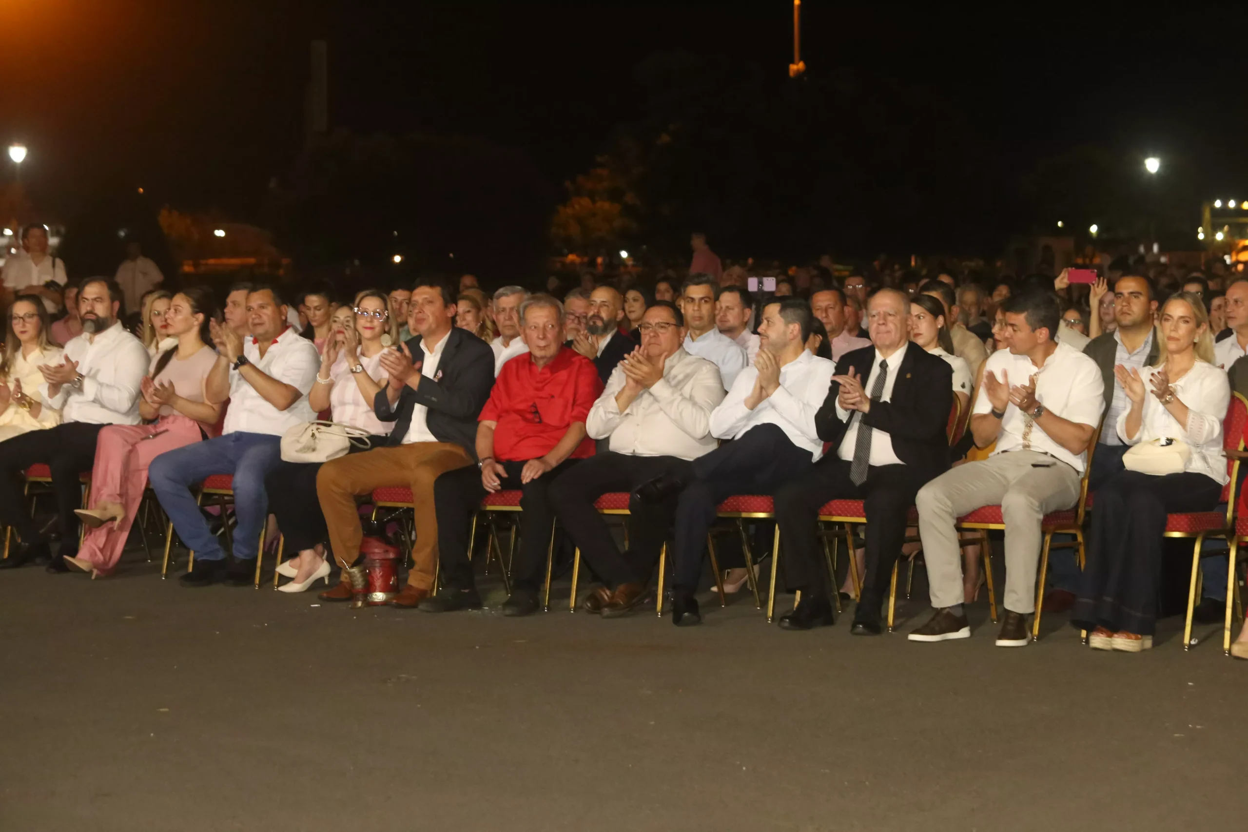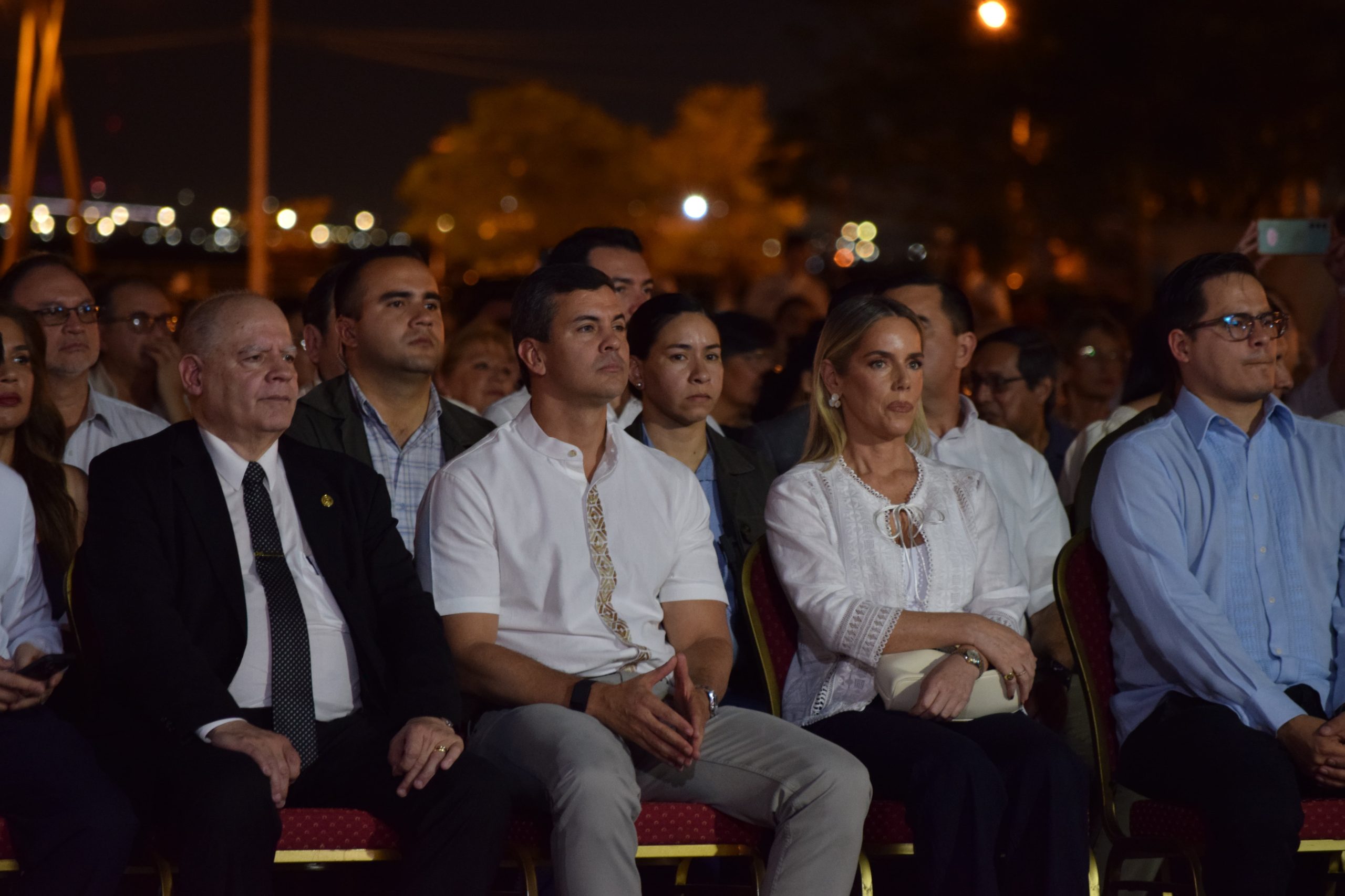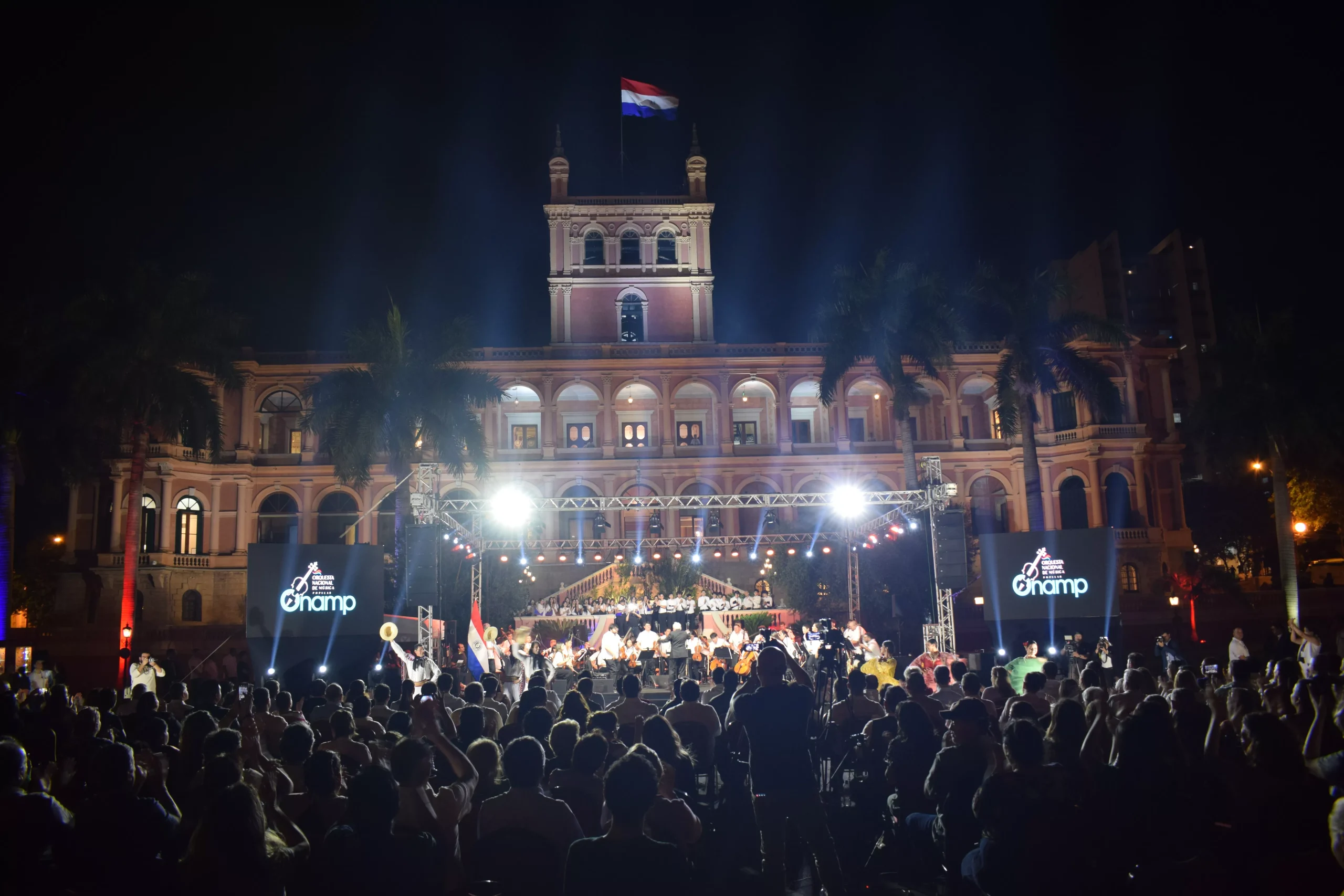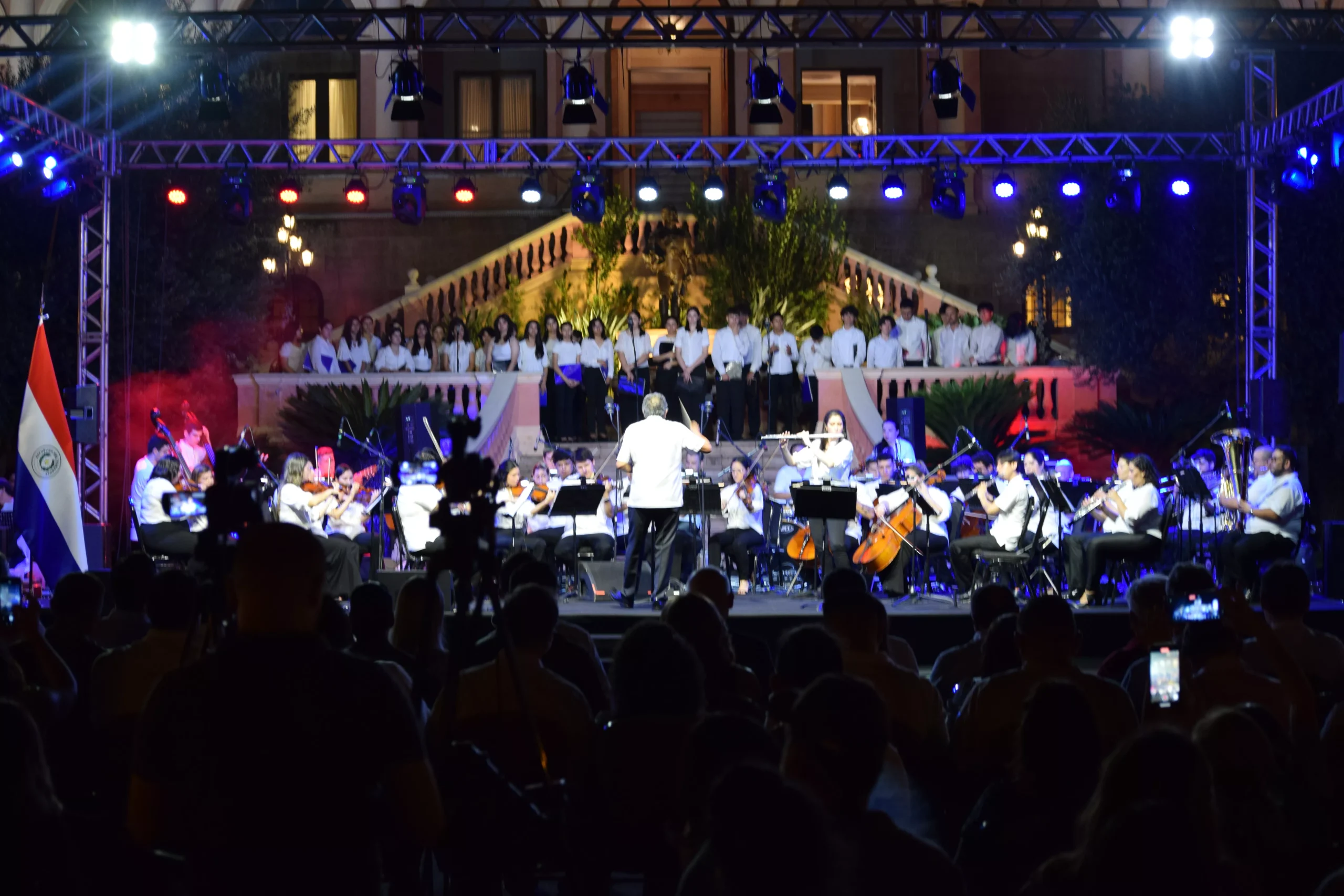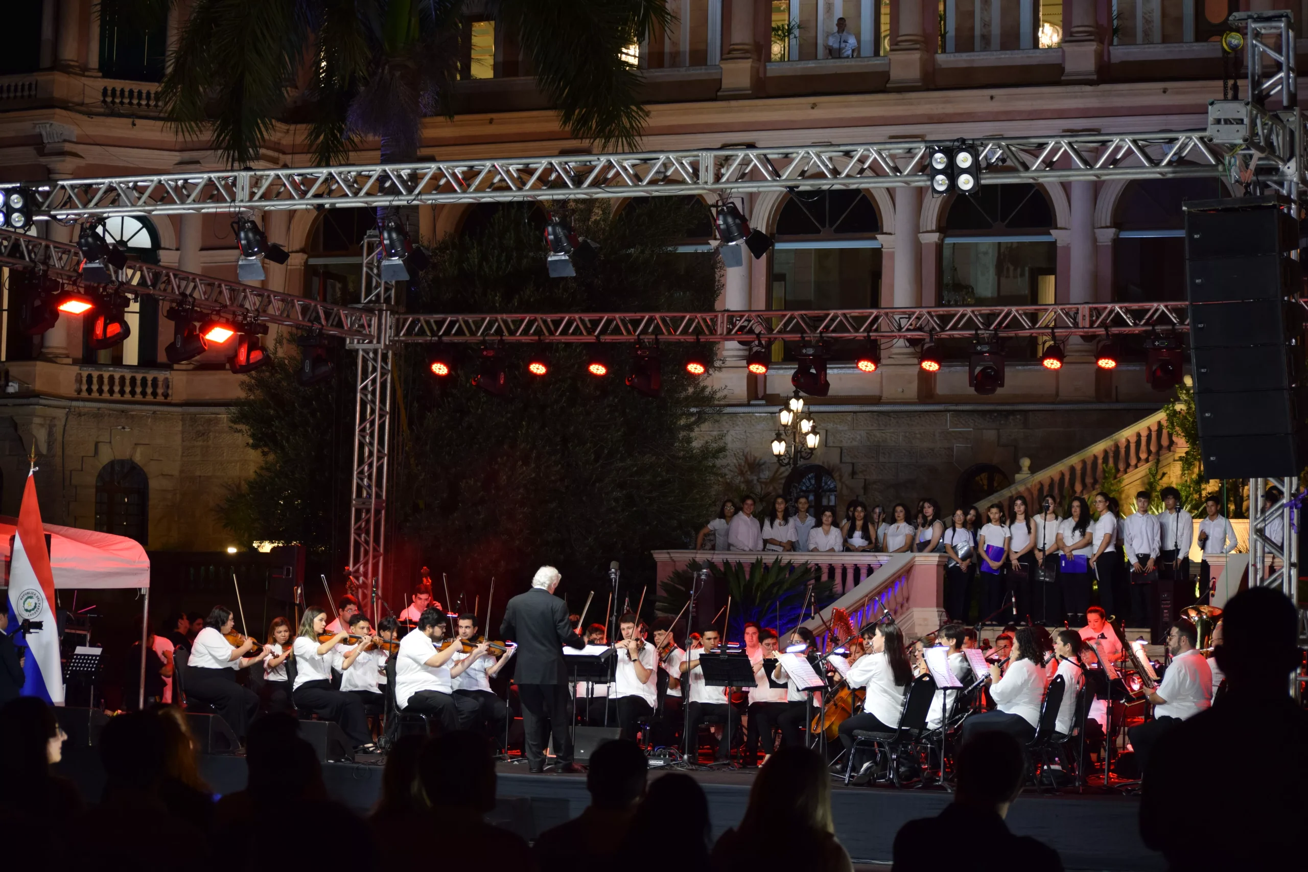 Ante un marco impresionante de público, con presencia de altas autoridades, entre ellas el presidente de la Repúbica Santiago Peña y su señora esposa, la primera dama, Leticia Ocampos, la Ministra de Cultura Adriana Ortiz Semidei, la Orquesta Nacional de Música Popular (ONAMP) dio su concierto inaugural en el frontispicio del Palacio de López, en el paseo litoral, a orillas del rio Paraguay.